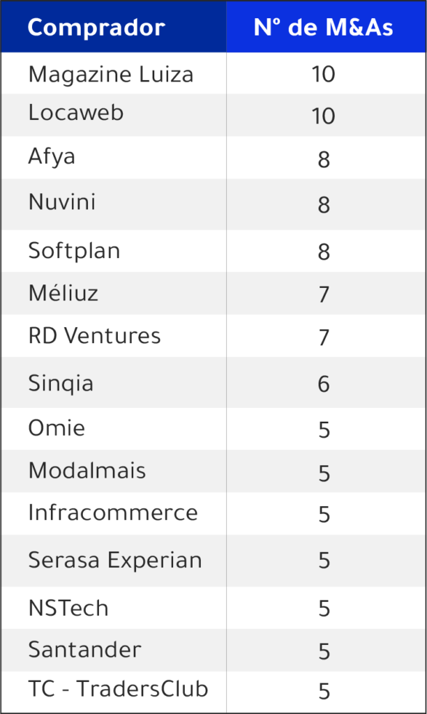 Conheça abaixo os compradores mais ativos dos últimos 3 anos, segundo a Sling Hub.